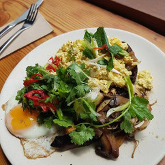 Our server was super attentive and had our order taken as soon as we were ready. The menu was quite different and we opted for the cornbread and tofu scrambled eggs. The food took about 20 minutes so we sipped on our lovely lattes while we waited taking in the atmosphere and the great fresh, green decor. My cornbread was so tasty and Denvers tofu scrambled eggs could have been real eggs. They had a wonderful melt in your mouth effect. We left both extremely happy and full.