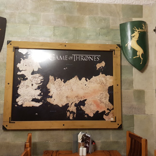 You can also find one of the ten GOT doors used as the entrance to the bar. These doors are scattered throughout Northern Ireland and the different locations of the doors can be found in the below link. When some of the trees along the Dark Hedges road (found in the Kingsroad scene from season 2) fell down in Storm Gertrude, some genius decided to carve these trees in to doors depicting various scenes from season 6 of the series.